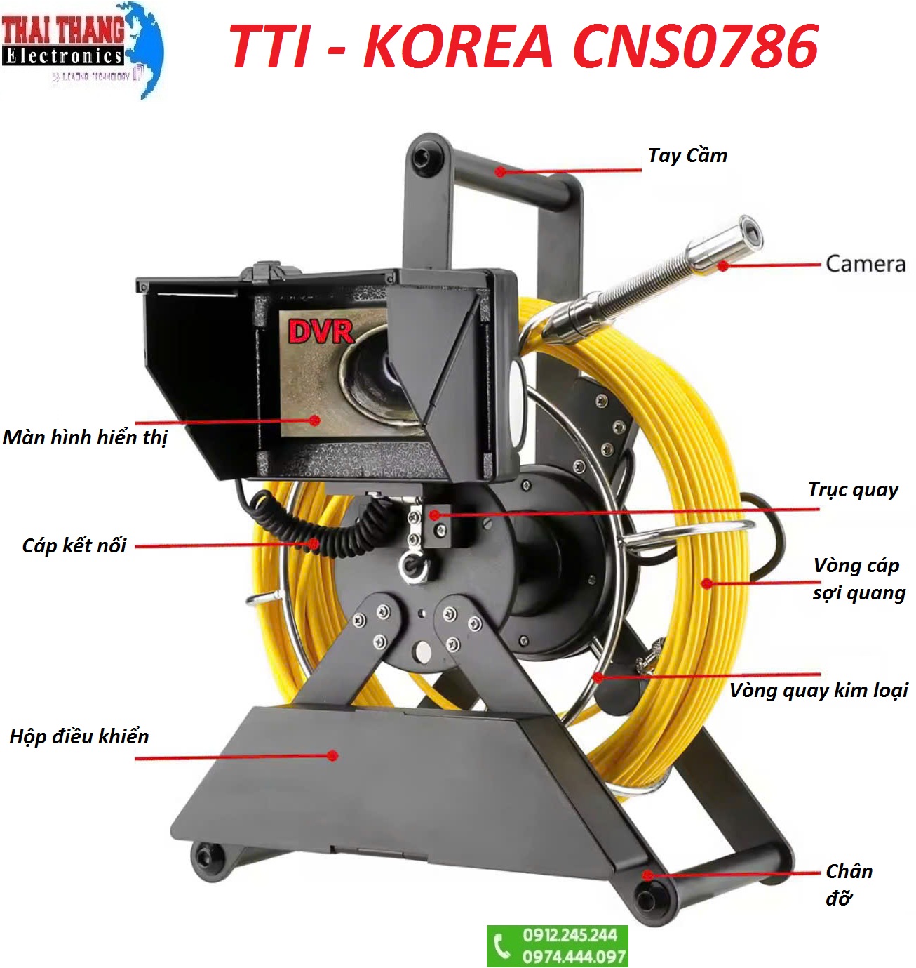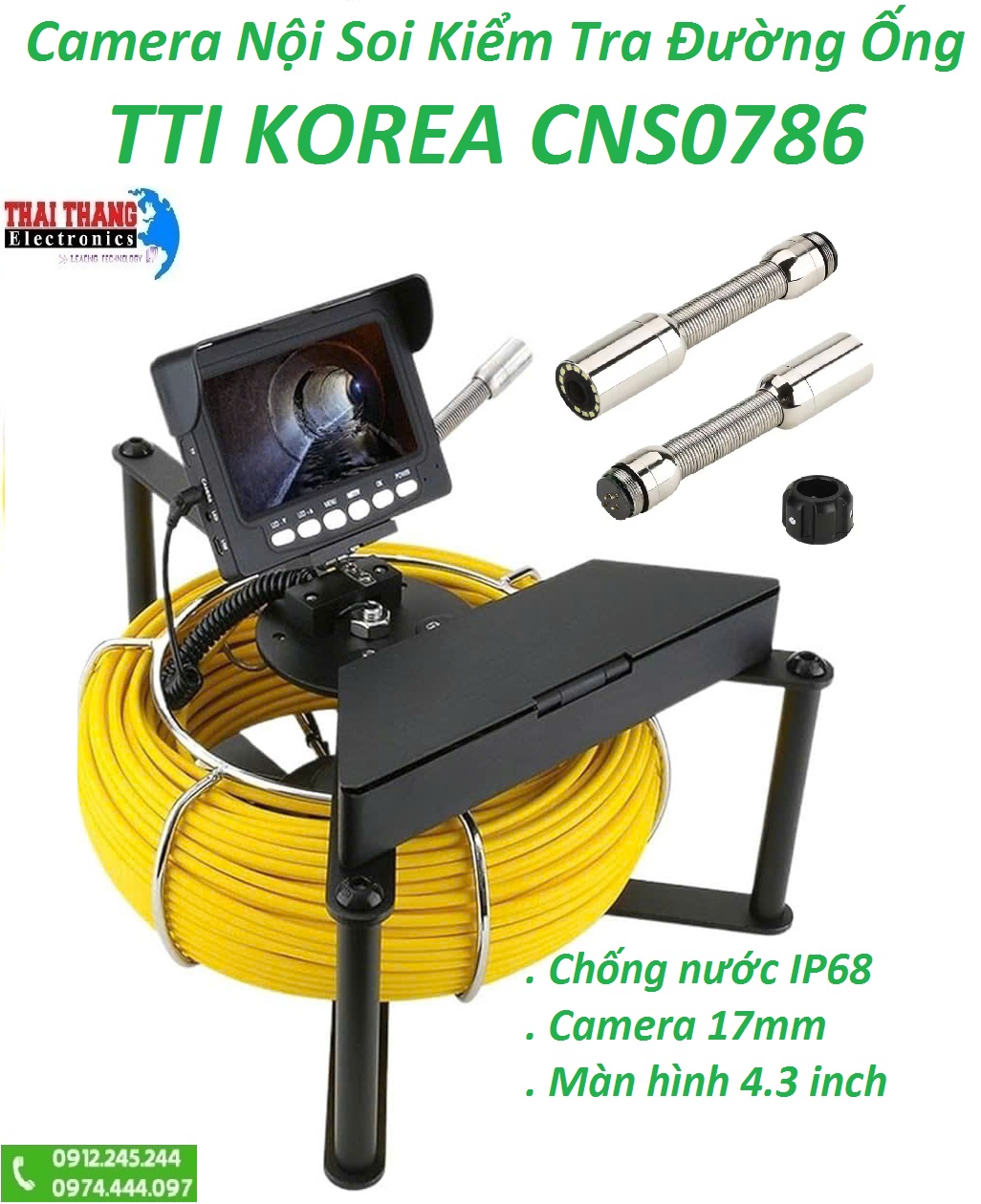 Camera kiểm tra đường ống thoát nước, ống cống, màn hình 4.3 inch, độ phân giải 1000TVL, nội soi công nghiệp đường ống thoát nước, camera 17mm, chuẩn IP68 TTI KOREA CNS0786 New