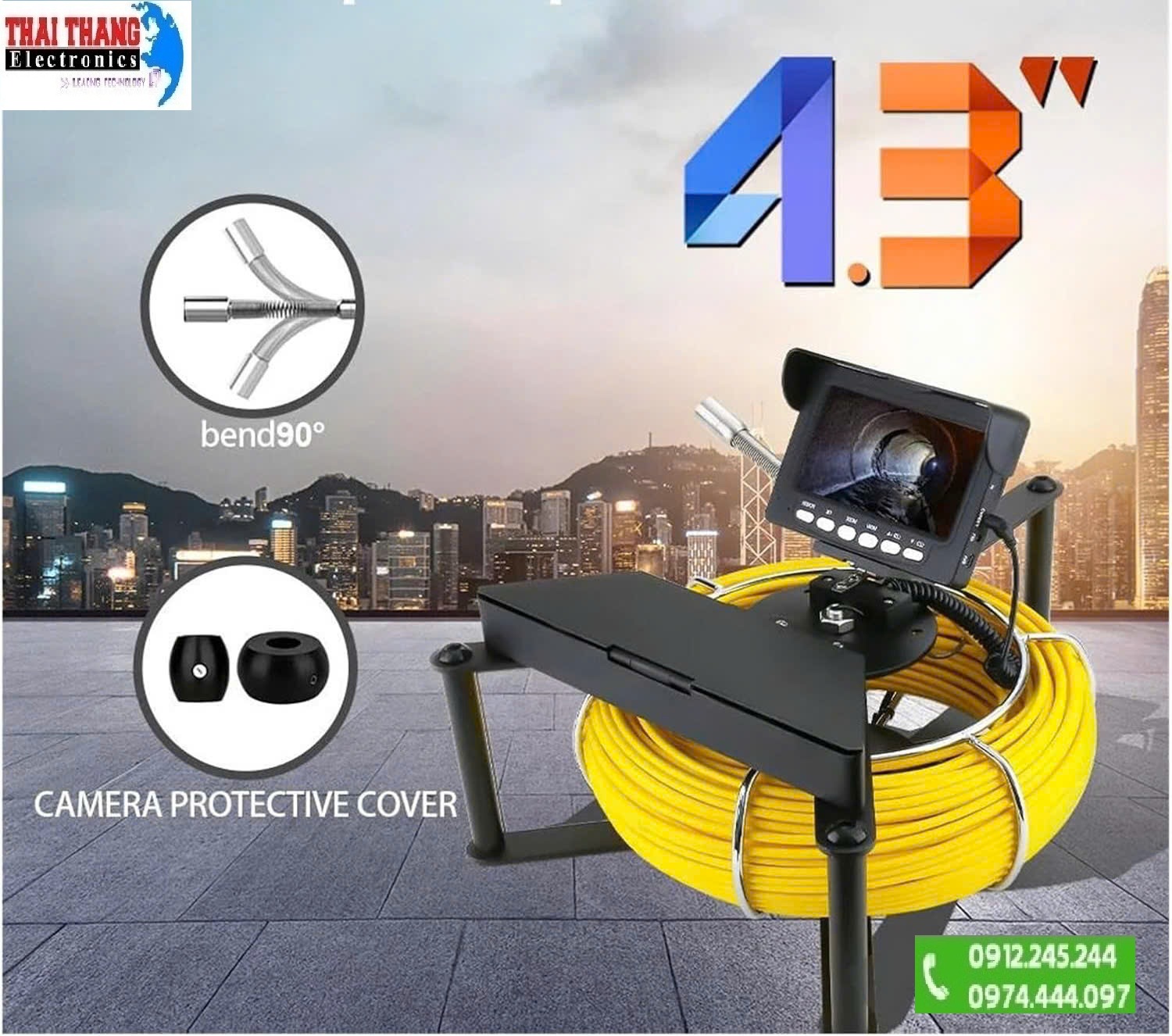 / Sản Phẩm Công Nghệ/ Camera nội soi ống công nghiệp, máy móc hiện đại/ Camera kiểm tra đường ống thoát nước, ống cống, màn hình 4.3 inch, độ...