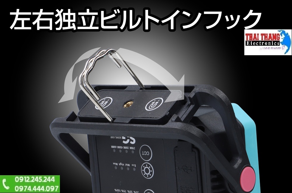 - Móc treo hai bên: Cho phép treo đèn ở nhiều vị trí khác nhau mà không cần thêm dụng cụ hỗ trợ.