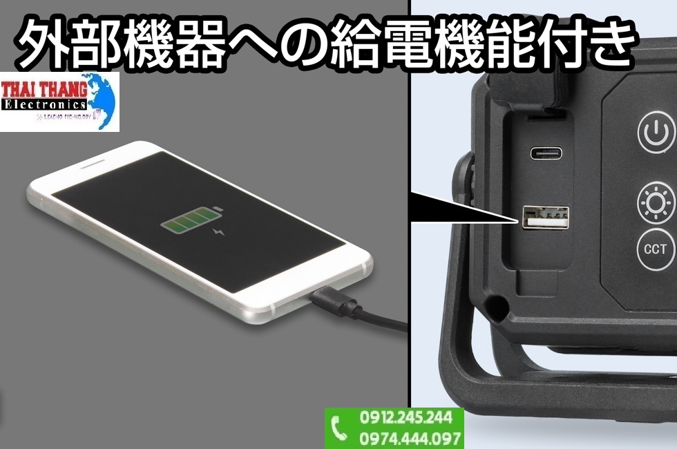 - Khả năng sạc ngược khiến đèn có thể cấp nguồn 5V/1A cho các thiết bị USB khác như điện thoại, đèn pin nhỏ hoặc quạt mini, rất tiện lợi khi làm việc ngoài trời.