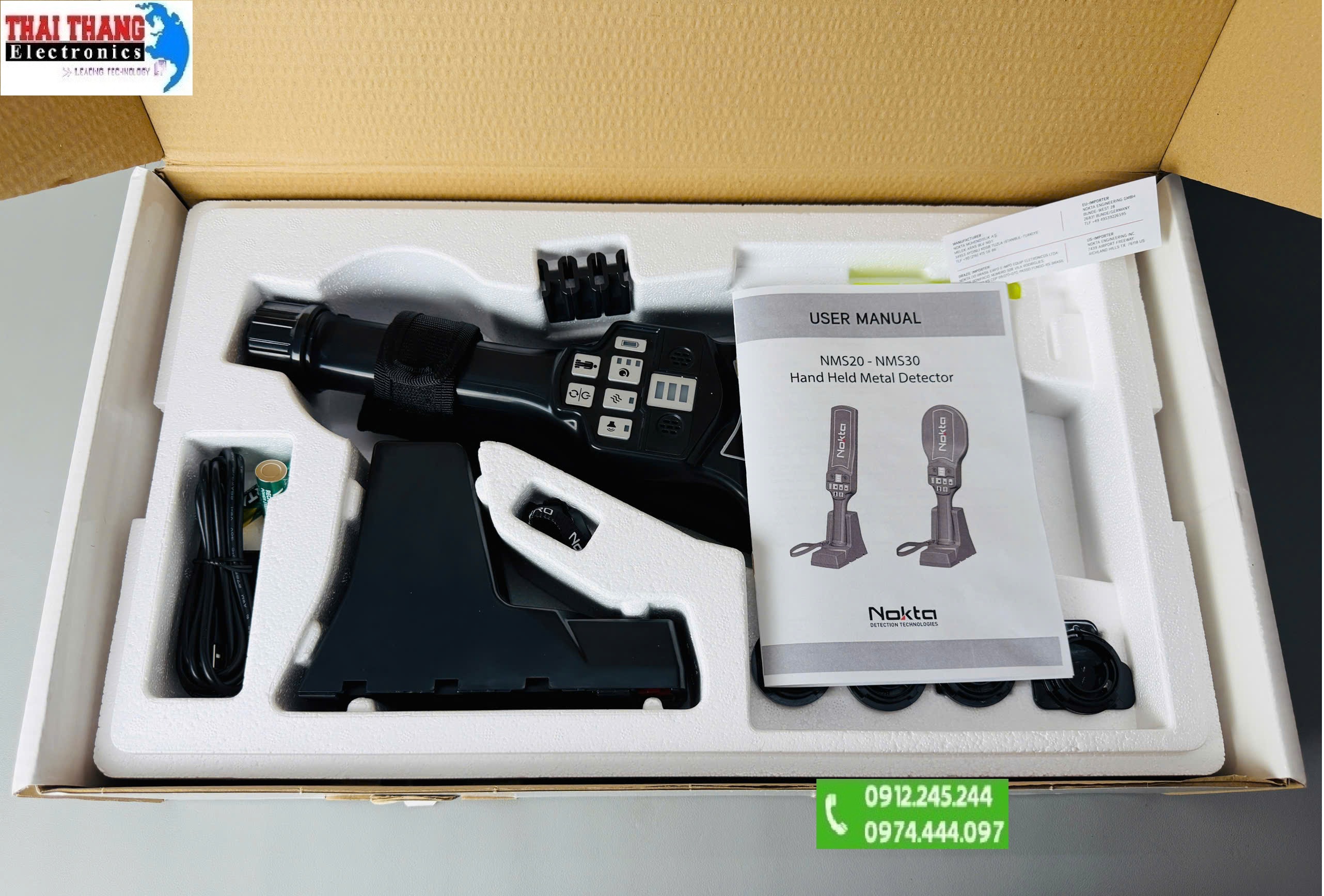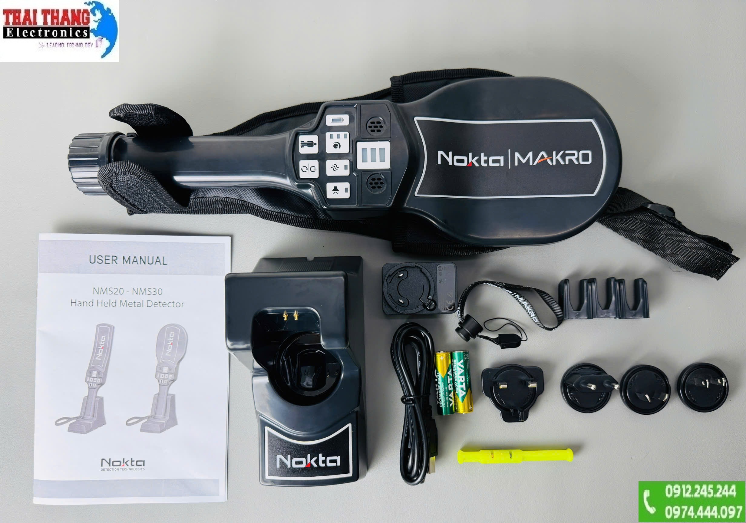 - Nokta NMS30 đi kèm Trạm sạc đa năng kiêm giá đỡ tiện lợi, giúp Sạc pin nhanh chóng, thuận tiện, Lưu trữ thiết bị gọn gàng. Bộ sạc đi kèm sử dụng nguồn AC/DC 100–240V, phù hợp với nhiều khu vực điện áp khác nhau.