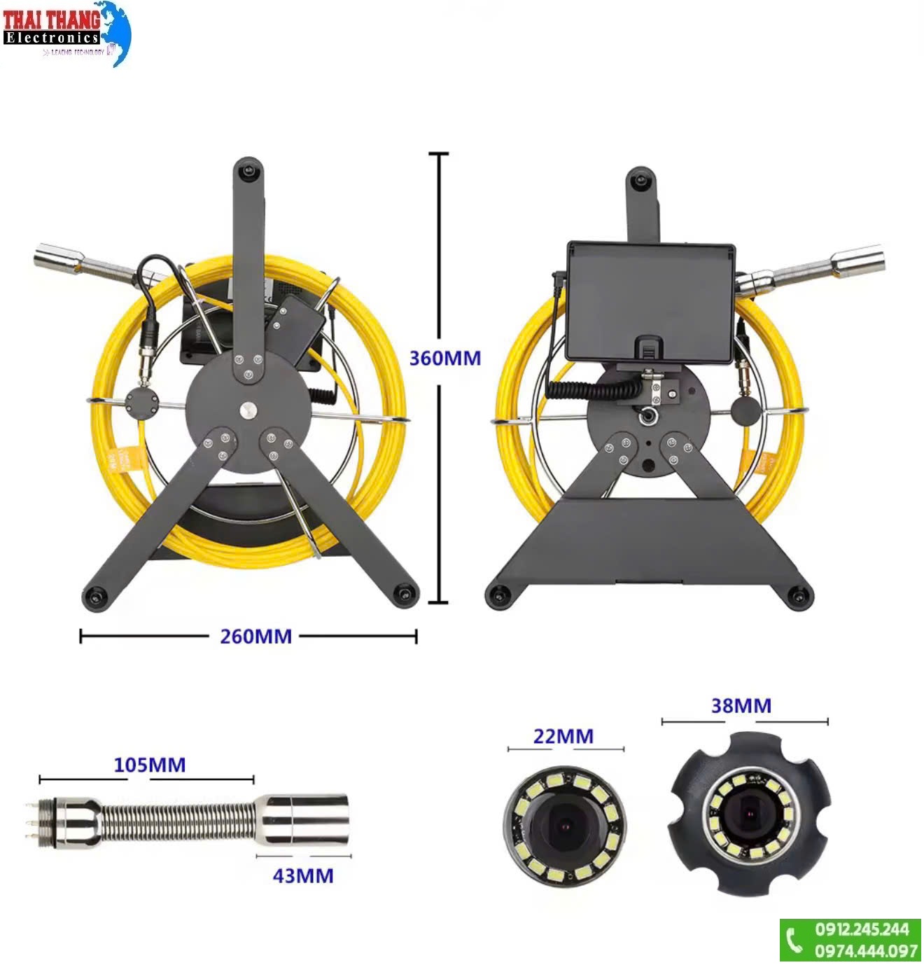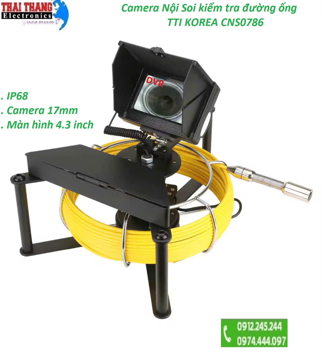 Camera kiểm tra đường ống thoát nước, ống cống, màn hình 4.3 inch, độ phân giải 1000TVL, nội soi công nghiệp đường ống thoát nước, camera 17mm, chuẩn IP68 TTI KOREA CNS0786 New