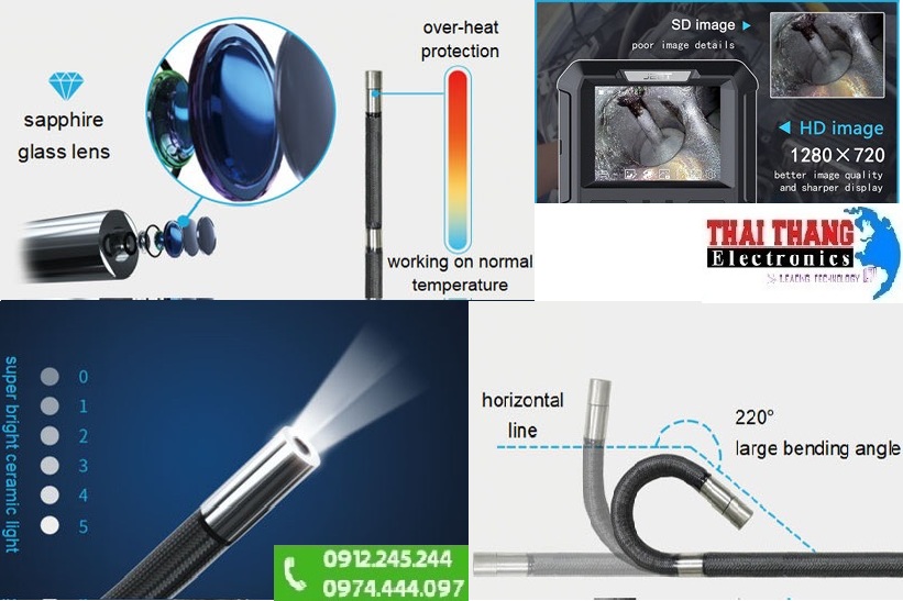 - Đầu và dây camera được cấu tạo bằng hợp kim vonfram siêu bền chịu nhiệt độ lên đến 80 độ C