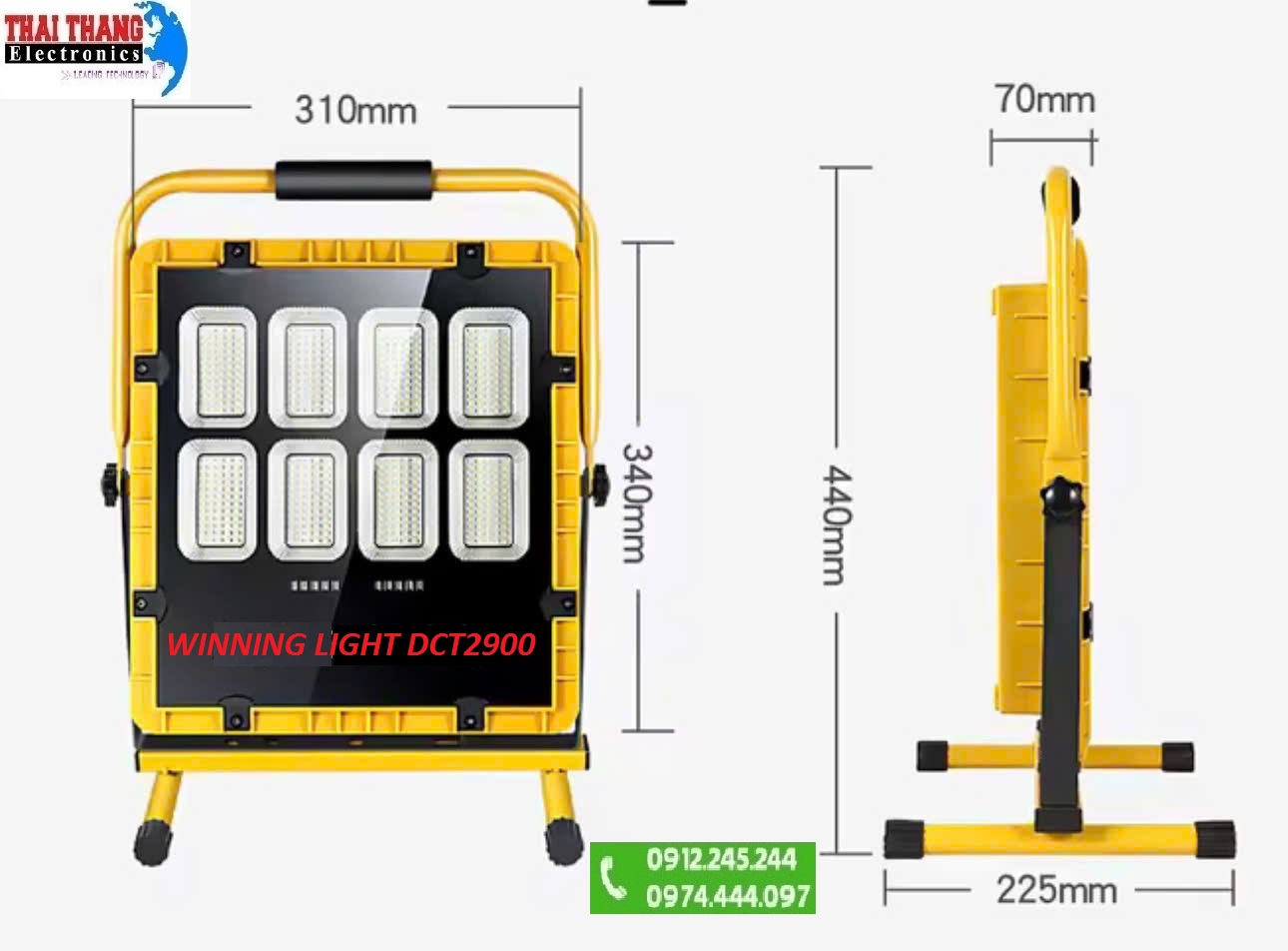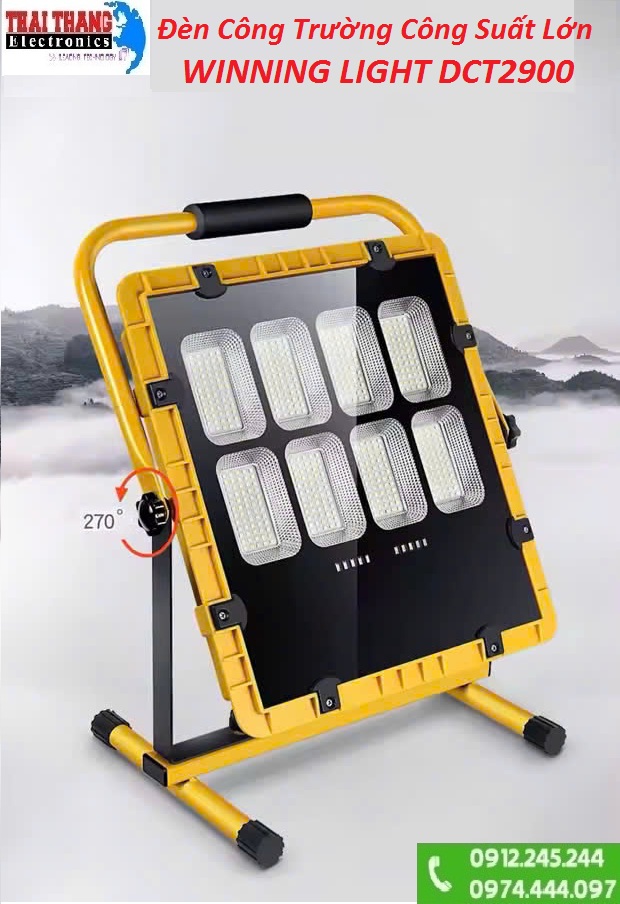 ĐÈN CÔNG TRƯỜNG CÔNG SUẤT CỰC LỚN 600W có pin sạc và pin năng lượng mặt trời WINNING LIGHT DCT2900
