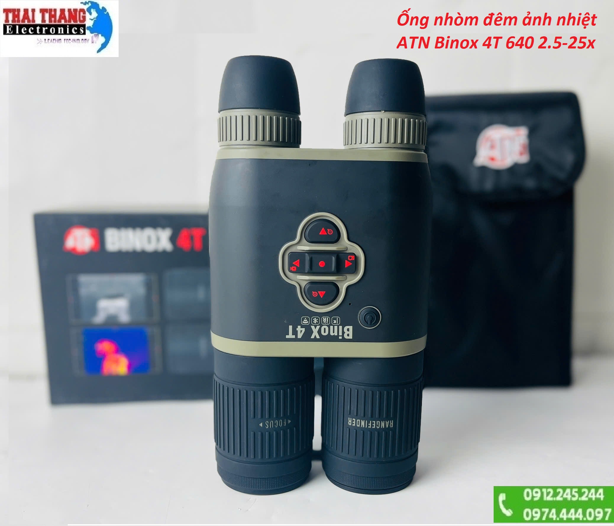Ống nhòm nhiệt ATN Binox 4T 640 2.5-25x là dòng ống nhòm nhiệt thế hệ mới của ATN. Sản phẩm hỗ trợ người dùng xác định chính xác các mục tiêu trong đêm dưới dạng ảnh nhiệt. Sản phẩm được trang bị cảm biến thế hệ thứ 4 60Hz kết hợp bộ xử lý lõi kép Dual Core cho độ phân giải 640x480px Hình ảnh sẽ có độ nét và độ tương phản cao cao cho dù sản phẩm được sử dụng trong thời tiết khắc ngiệt. Hệ thống zoom từ 2.5-25x  giúp sản phẩm có khả năng phát hiện người với khoảng cách 1950m, nhận biết con người trong khoảng 800m và nhận dạng chính xác ở khoảng cách 475m. Góc nhìn rộng 12.5°x9.7° giúp người dùng dễ dàng theo dõi các mục tiêu đang di chuyển với tốc độ cao cũng như có khoảng nhìn rộng và bao quát nhất.